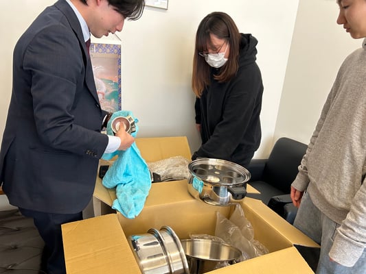 「ロイヤルクイーン下取り寄贈プロジェクト」として、最高級のステンレスを使用した調理器具の下取り品を綺麗に磨きあげ、必要とされる施設へお届けしていただきました。
